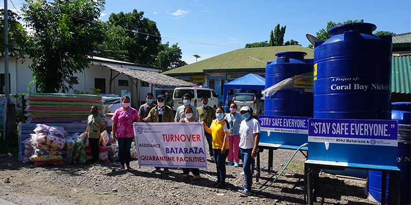Coral Bay Nickel Corporation (CBNC) has turned over six portable outdoor handwashing units with faucet system to Bataraza town's quarantine facilities to contain the spread of the coronavirus disease.